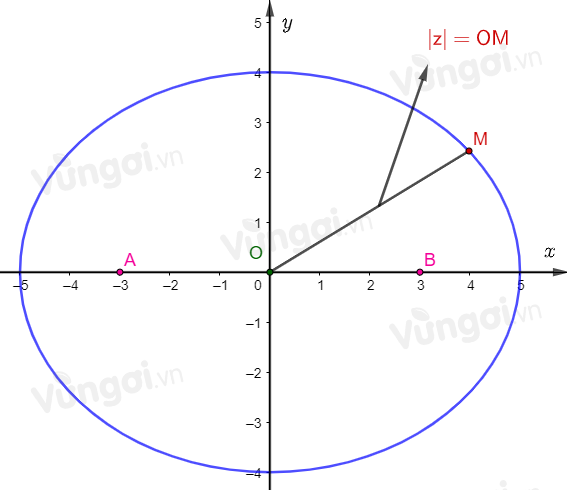 Vẽ elip trên mặt phẳng tọa độ và suy ra GTNN của \(\left| z \right|=OM\). Vì M thuộc Elip trên nên khoảng cách OM nhỏ nhất bằng \(b=4\).