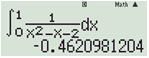 \(I = \int\limits_0^1 {\dfrac{1}{{{x^2} - x - 2}}dx} = \int\limits_0^1 {\dfrac{1}{{(x - 2)(x + 1)}}dx} = \dfrac{1}{3}\left. {\ln \left| {\dfrac{{x - 2}}{{x + 1}}} \right|} \right|_0^1 = - \dfrac{{2\ln 2}}{3}\)
